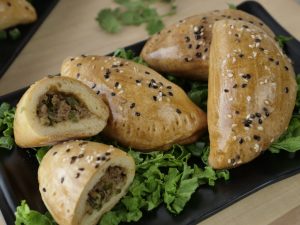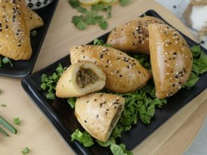 On flour dusted baking tray,place prepared pockets,brush yogurt & milk mixture and sprinkle sesame seeds.
