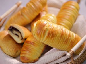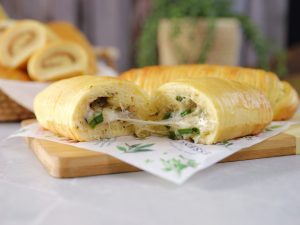 -Spread prepared garlic cheese filling or peanut butter or chocolate spread on the remaining half of the dough then roll out the dough & seal the sides carefully.
