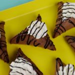 -Place pancake on baking paper,fold the corners of pancakes in a triangle shape & hold it for few seconds to stick together while the pancake is still hot (makes 11-12).
