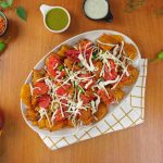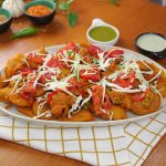 -In a serving platter, add fried pakoray, fried tomato & green chilli slices, pickle, garnish with cabbage & serve!