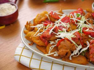 -Isi cooking oil mein (180 C) tamatar ke slices aur hari mirch ke slices dalein aur high flame par 1 minute fry karlen.