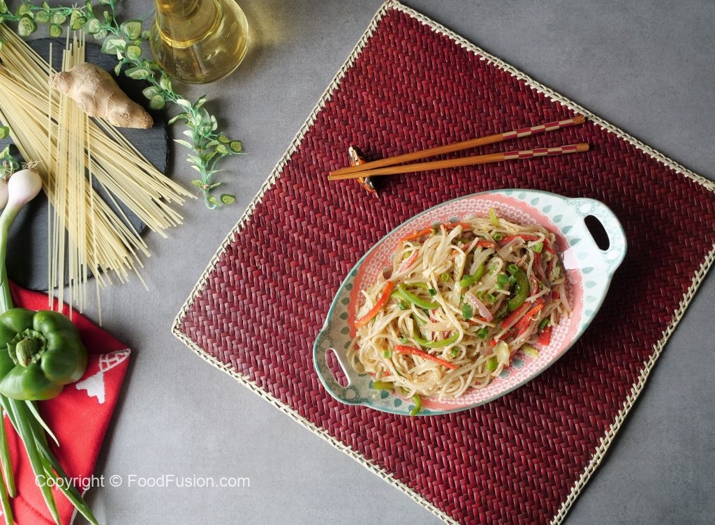 Boiled spaghetti,safed mirch powder,kali mirch crushed,nama,chicen powder,soy sauce,hot sauce aur sirka dal ker 1-2 minutes kliya ache tarhan mix ker lein.