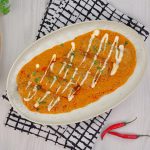 -In a serving platter add vegetable seekh kabab, pour gravy over kabab, garnish with cream & fresh coriander, serve with naan!
