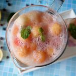 In a pitcher,add melon balls,watermelon balls,honeydew melon balls,prepared juice,7up,mint leaves,stir & serve!